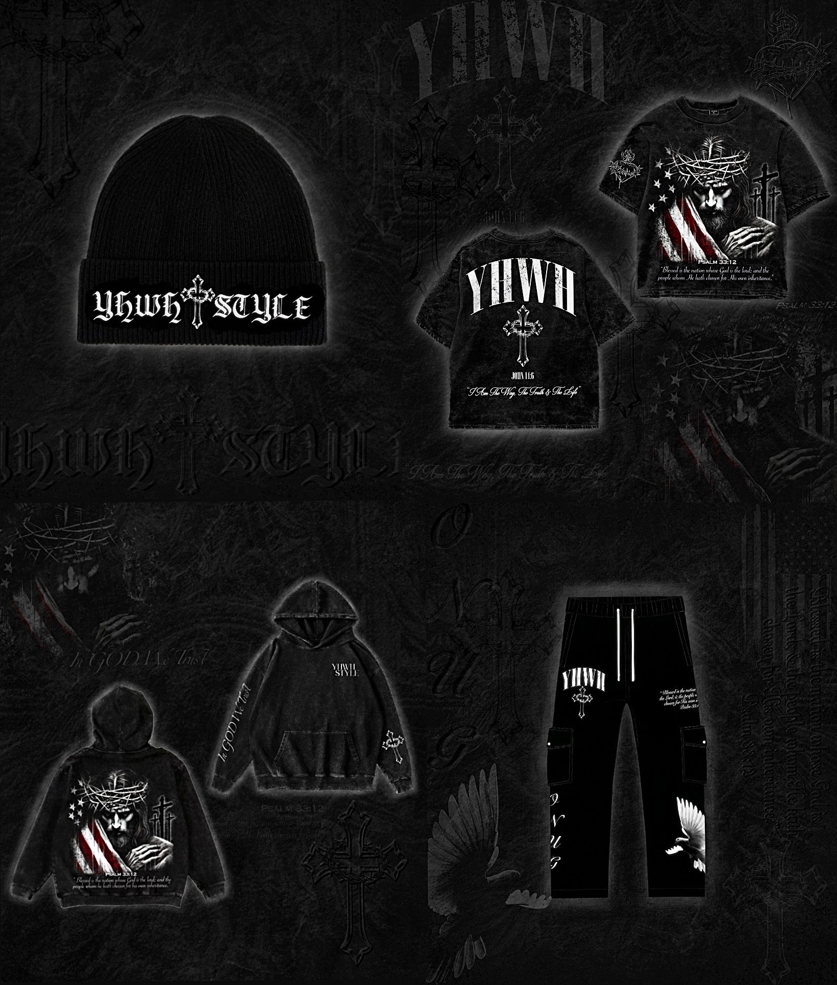 Each YHWH Style garment is constructed from the ground up - raw materials, custom cuts, custom unisex size chart & fabrics built for longevity. Designed with intention, tailored for comfort, and crafted to wear your Faith on your sleeve.